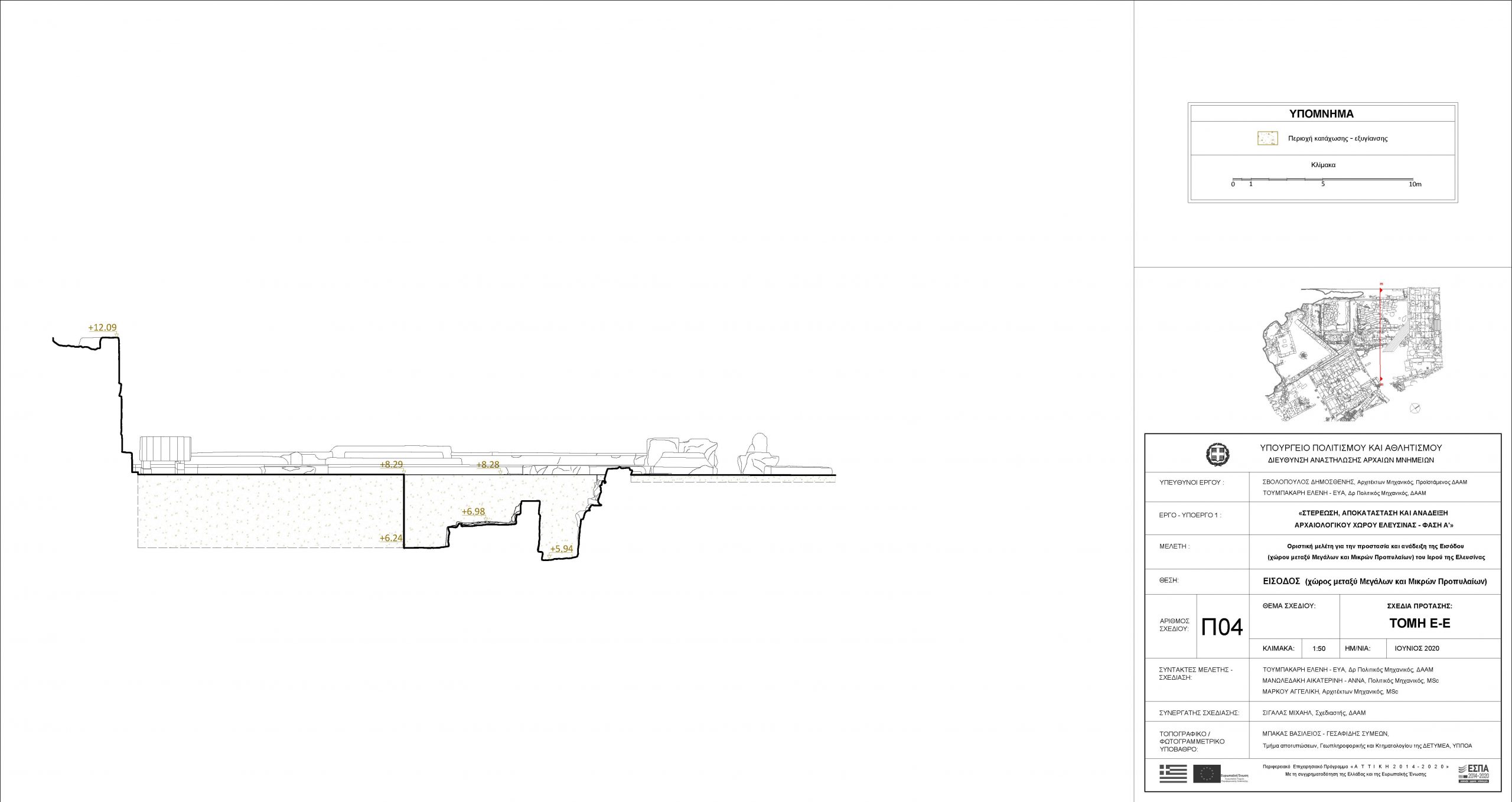 Στο πλαίσιο του έργου, το 2020 εκπονήθηκε και εγκρίθηκε ομόφωνα από το ΚΑΣ η «Οριστική μελέτη για την προστασία και ανάδειξη της Εισόδου (χώρου μεταξύ Μεγάλων και Μικρών Προπυλαίων) του Ιερού της Ελευσίνας». Για την σύνταξη της μελέτης εργάστηκαν η Αικατερίνη-Άννα Μανωλεδάκη, Πολιτικός Μηχ. – M.Sc., η Αγγελική Μάρκου, Αρχιτέκτων Μηχ. – M.Sc. και η Ελένη-Εύα Τουμπακάρη, Δρ. Πολιτικός Μηχ. στην ΔΑΑΜ, υπεύθυνη του έργου. Αντικείμενο της μελέτης αποτελεί η αναγνώριση και τεκμηρίωση της οικοδομικής εξέλιξης της περιοχής της Εισόδου και, ακολούθως, ο σχεδιασμός της προστασίας και ανάδειξης αυτής.