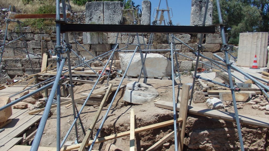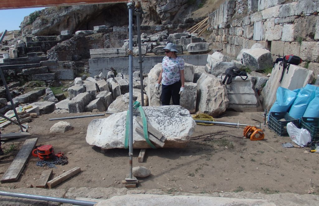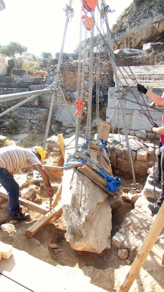 Πρόκειται για την μεγαλύτερη ανευρεθείσα δοκό των Μεγάλων Προπυλαίων (σωζόμενου μήκους 2.90m και βάρους άνω των 3.5tn). Το διάστημα 21/10/2020 έως 04/11/2020 πραγματοποιήθηκαν: