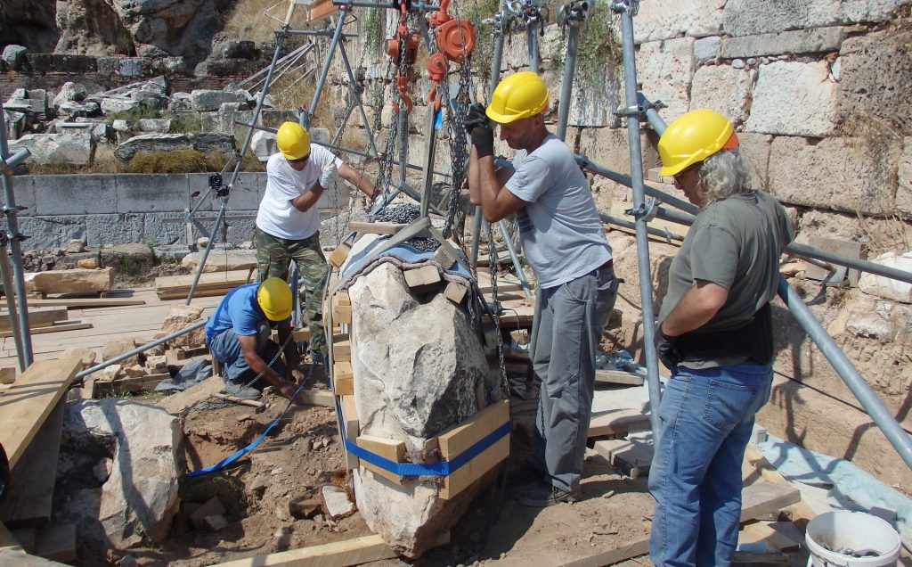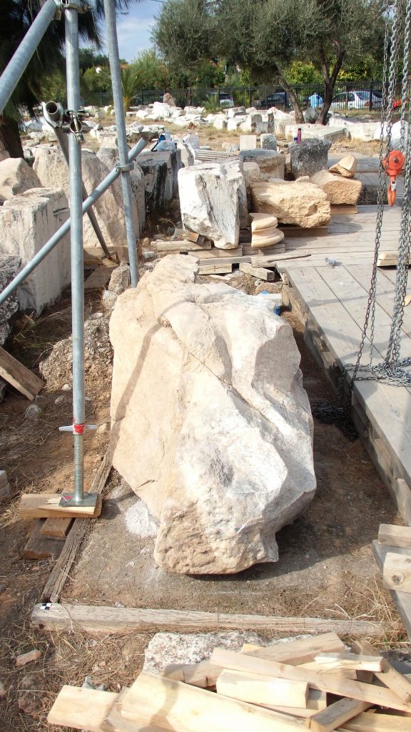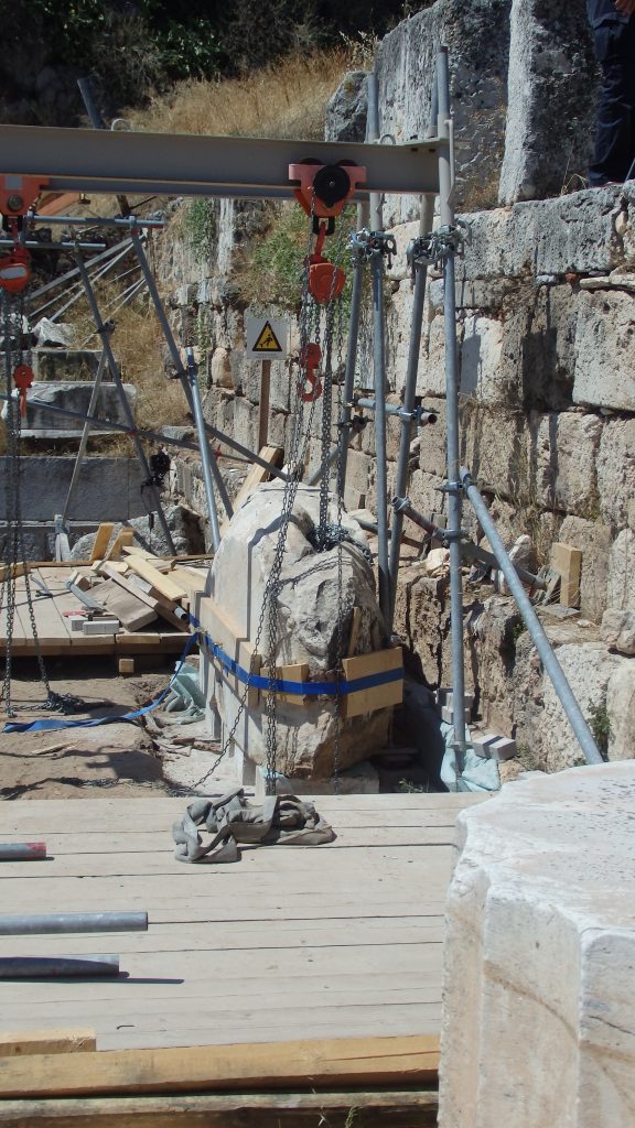 Πρόκειται για τον ογκωδέστατο ορθοστάτη των μακρών τοίχων των Μεγάλων Προπυλαίων (βάρους άνω των 4.8tn). Το διάστημα 24/06/2020 έως 02/07/2020 πραγματοποιήθηκαν, με την σειρά: