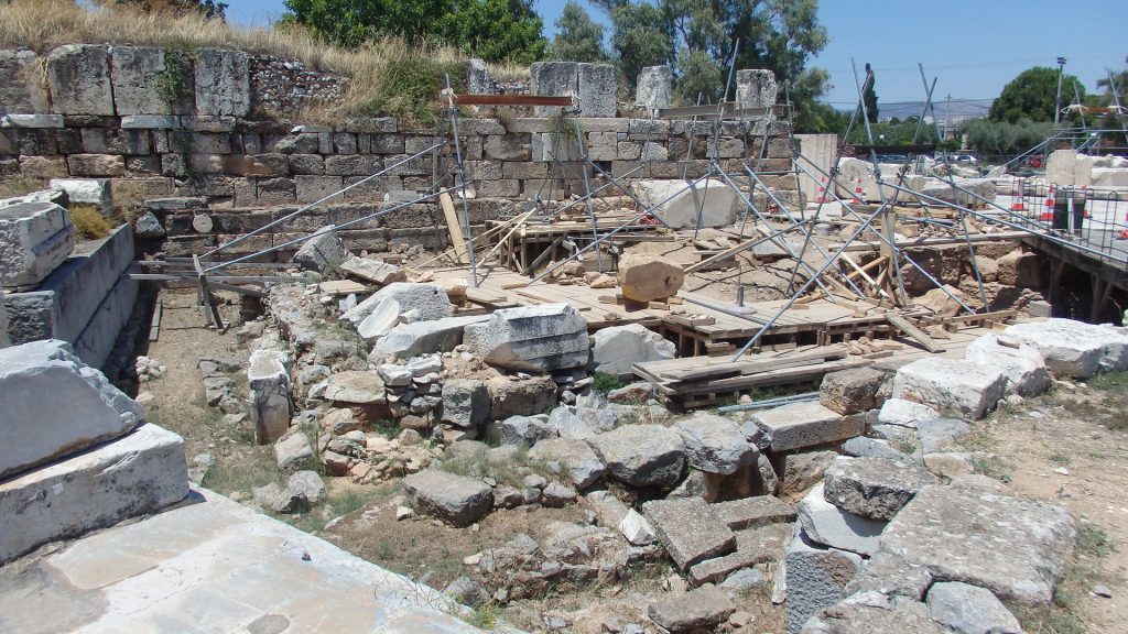 στ) Απόψεις (από το Βορρά και την Ανατολή) του μέλους στην οριστική του θέση, πλησίον του υστερορωμαϊκού τείχους. [Αικ.-Α. Μανωλεδάκη]