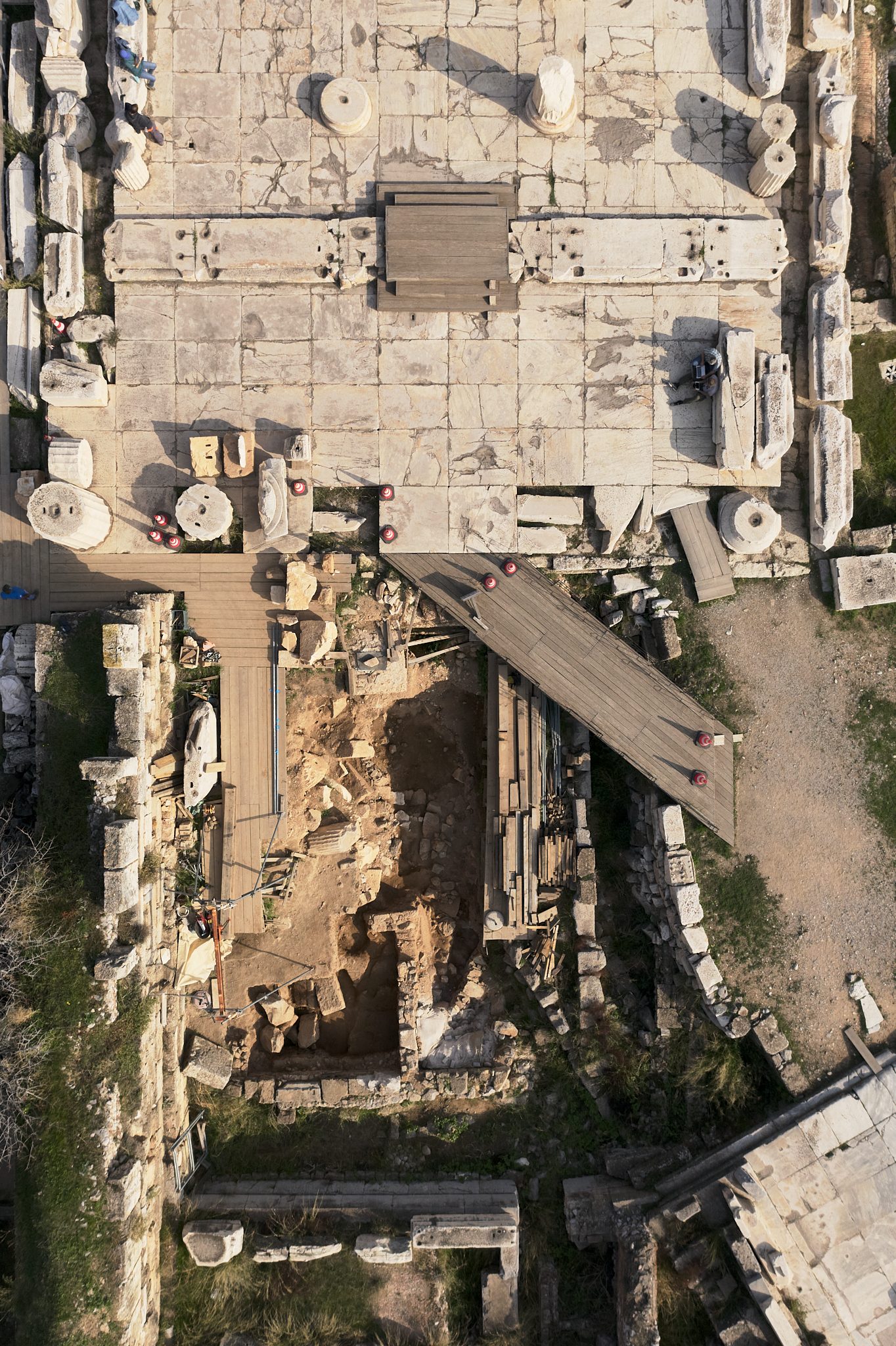 Φωτογραφική τεκμηρίωση των μεταβολών που επήλθαν στην περιοχή μεταξύ Μεγάλων και Μικρών Προπυλαίων με την πρόοδο των εργασιών ανέλκυσης και απομάκρυνσης διάσπαρτων αρχιτεκτονικών μελών: