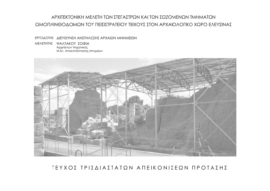 Ψαλτάκου, Σ. (2023). Αρχιτεκτονική μελέτη των στεγάστρων των σωζόμενων τμημάτων ωμοπλινθοδομών του Πεισιστράτειου τείχους στον αρχαιολογικό χώρο Ελευσίνας. Τεύχος τρισδιάστατων απεικονίσεων πρότασης.