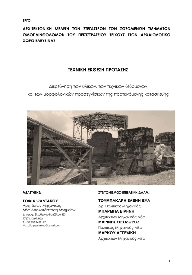 Ψαλτάκου, Σ. (2023). Αρχιτεκτονική μελέτη των στεγάστρων των σωζόμενων τμημάτων ωμοπλινθοδομών του Πεισιστράτειου τείχους στον αρχαιολογικό χώρο Ελευσίνας. Τεχνική έκθεση πρότασης. Διερεύνηση των υλικών, των τεχνικών δεδομένων και των μορφολογικών προσεγγίσεων της προτεινόμενης κατασκευής.