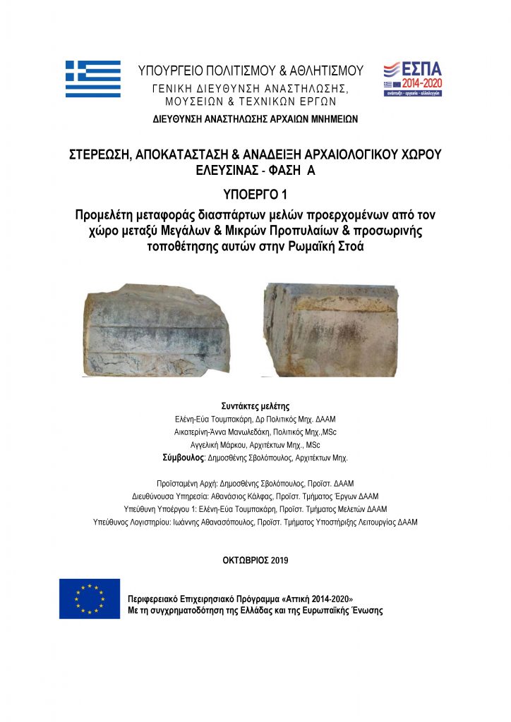 Τουμπακάρη Ελ.-Ε., Μανωλεδάκη, Αικ.-Α. και Μάρκου, Α. (2019). Μελέτη μεταφοράς διάσπαρτων μελών προερχόμενων από τον χώρο μεταξύ Μεγάλων & Μικρών Προπυλαίων & προσωρινής τοποθέτησης αυτών στην Ρωμαϊκή Στοά.
