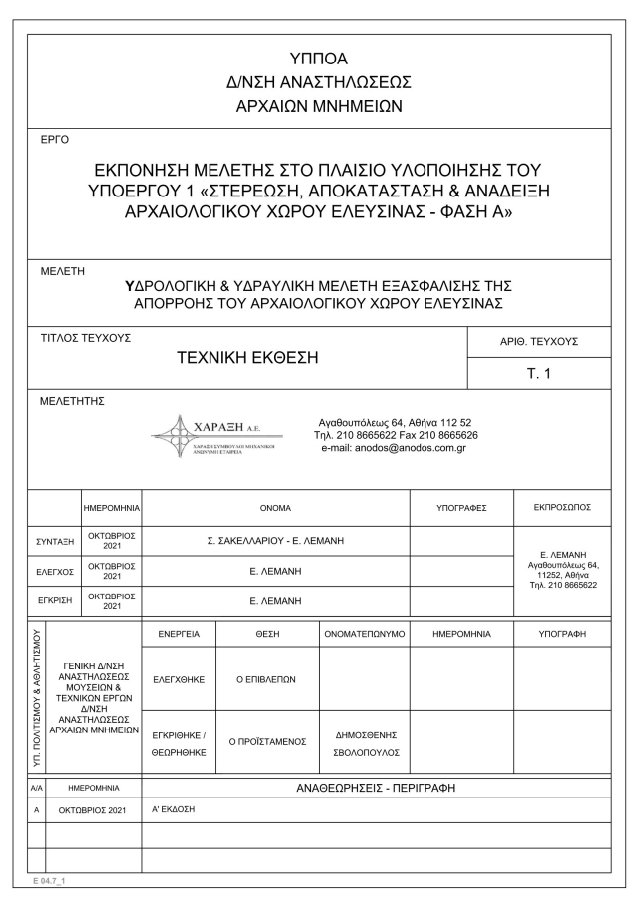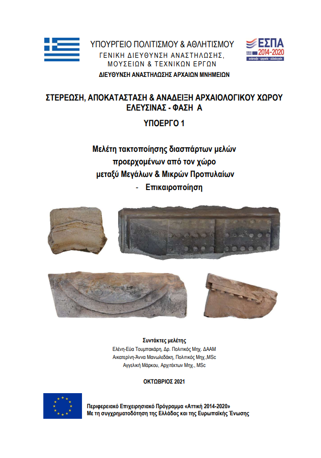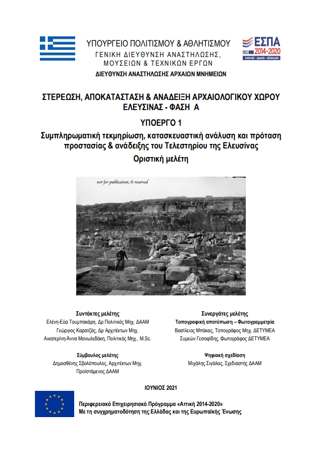 Τουμπακάρη Ελ.-Ε., Καρατζάς, Γ. και Μανωλεδάκη, Αικ.-Α. (2021). Συμπληρωματική τεκμηρίωση, κατασκευαστική ανάλυση και πρόταση προστασίας και ανάδειξης του Τελεστηρίου της Ελευσίνας – Οριστική μελέτη.