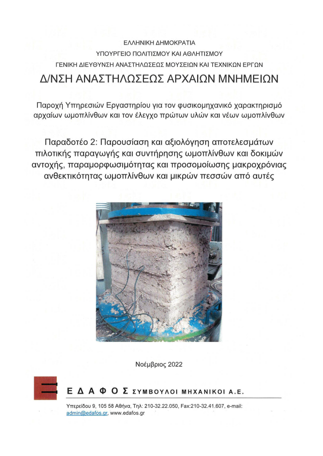 Τουμπακάρη Ελ.-Ε., Μαρίνης, Θ. και Μπάρδάνης, Μ. (2022). Το Πεισιστράτειο Τείχος – Μέρος Β. Μελέτη σχεδιασμού υλικών για την συμπλήρωση τμήματος ωμοπλινθοδομής στο Πεισιστράτειο τείχος της Ελευσίνας.