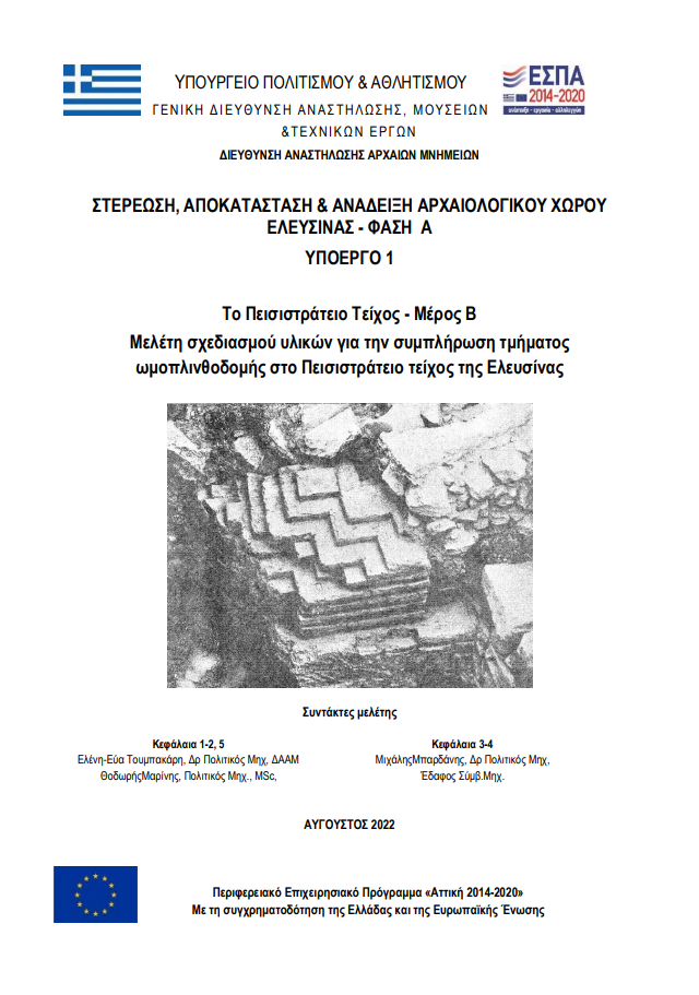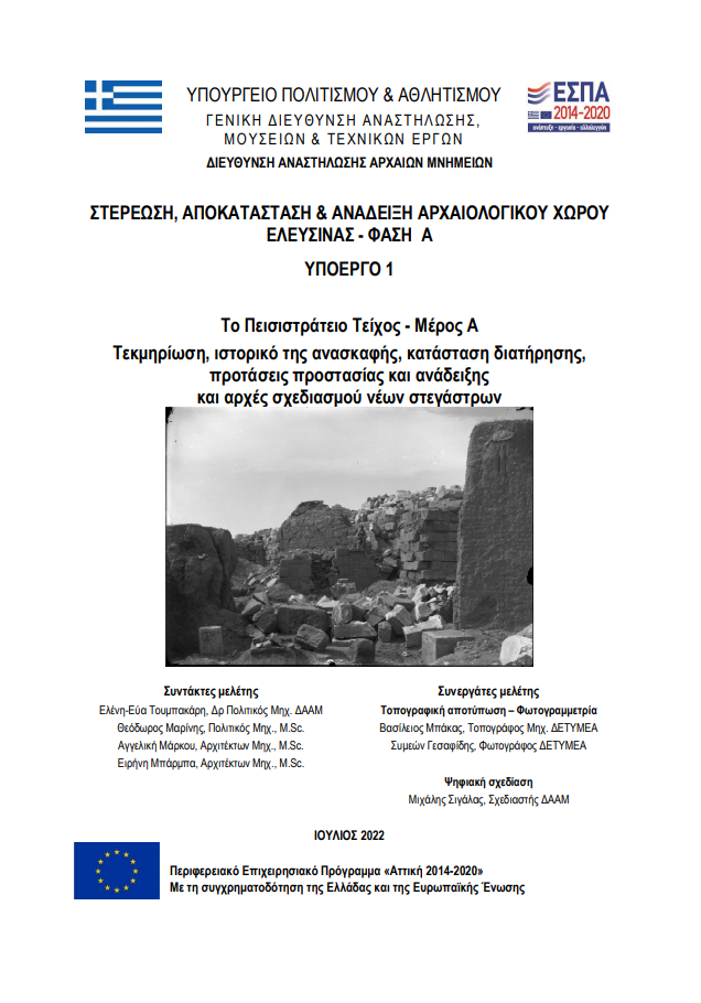 Τουμπακάρη Ελ.-Ε., Μαρίνης, Θ., Μάρκου, Α. και Μπάρμπα, Ε. (2022). Το Πεισιστράτειο Τείχος – Μέρος Α. Τεκμηρίωση, ιστορικό της ανασκαφής, κατάσταση διατήρησης, προτάσεις προστασίας και ανάδειξης και αρχές σχεδιασμού νέων στεγάστρων.