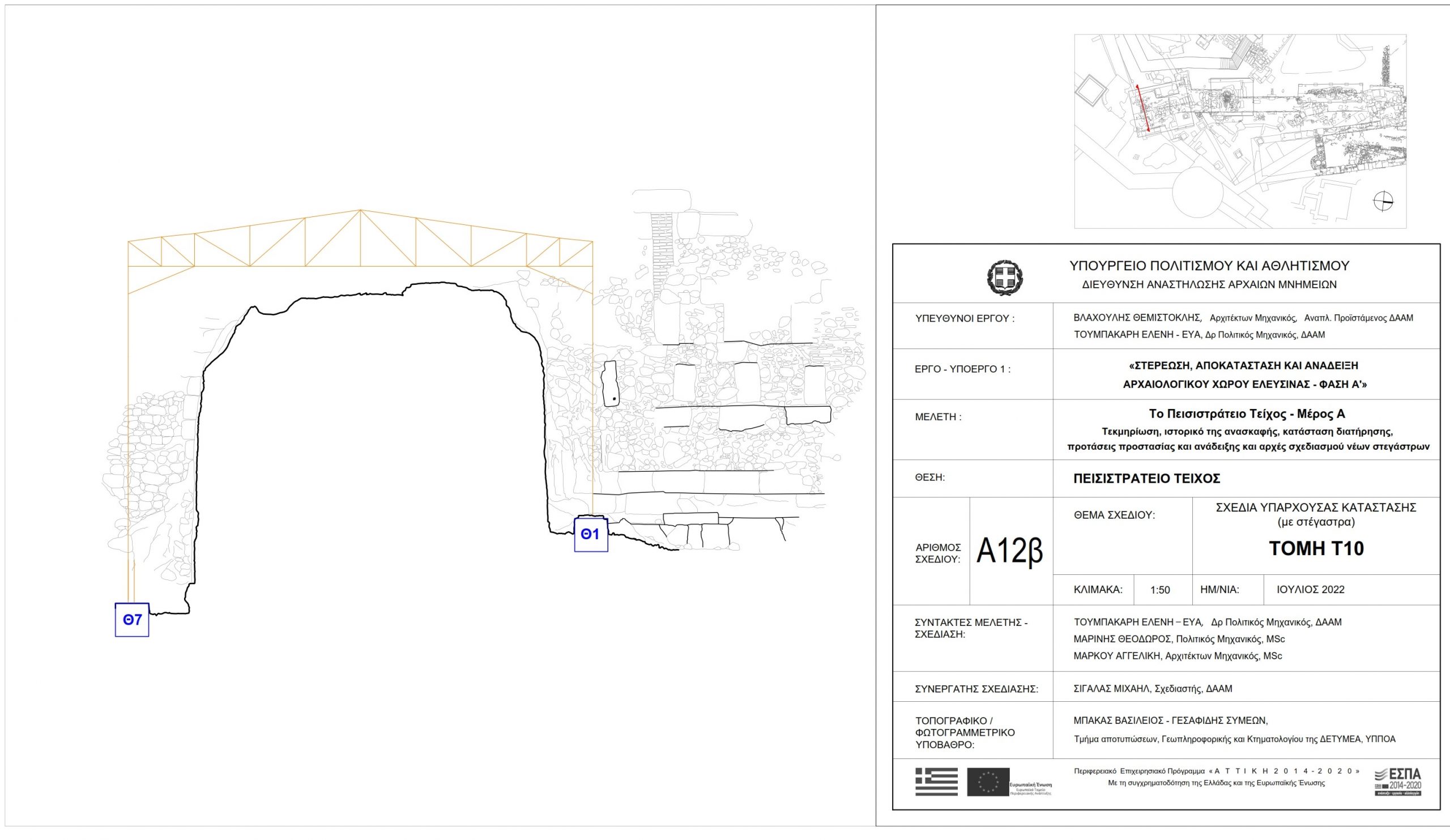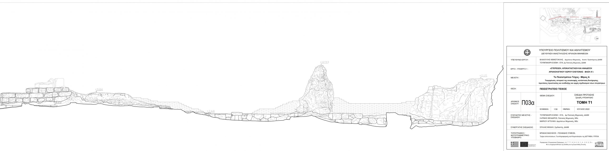 Τέλος, στο πλαίσιο της Πράξης «Στερέωση, αποκατάσταση και ανάδειξη αρχαιολογικού χώρου Ελευσίνας- Φάση Α’», πραγματοποιήθηκαν κατά τη διάρκεια των ετών 2018-2021 ανασκαφικές τομές σε επιλεγμένες θέσεις της περιοχής μελέτης με επίβλεψη των αρχαιολόγων του υποέργου 2, ‘’Αρχαιολογικές Εργασίες’’, Κ. Παπαγγελή, Ε. Ανέστη, Μ. Λίτσα και Δ.Κριθαρά, με στόχο: α) την τεκμηρίωση του μνημείου σε χαρακτηριστικά σημεία του, όπου τα διαθέσιμα-από τη βιβλιογραφία στοιχεία – ήταν ελλιπή και β) τον καθορισμό επιτρεπόμενων θέσεων για τη θεμελίωση του νέου στεγάστρου.