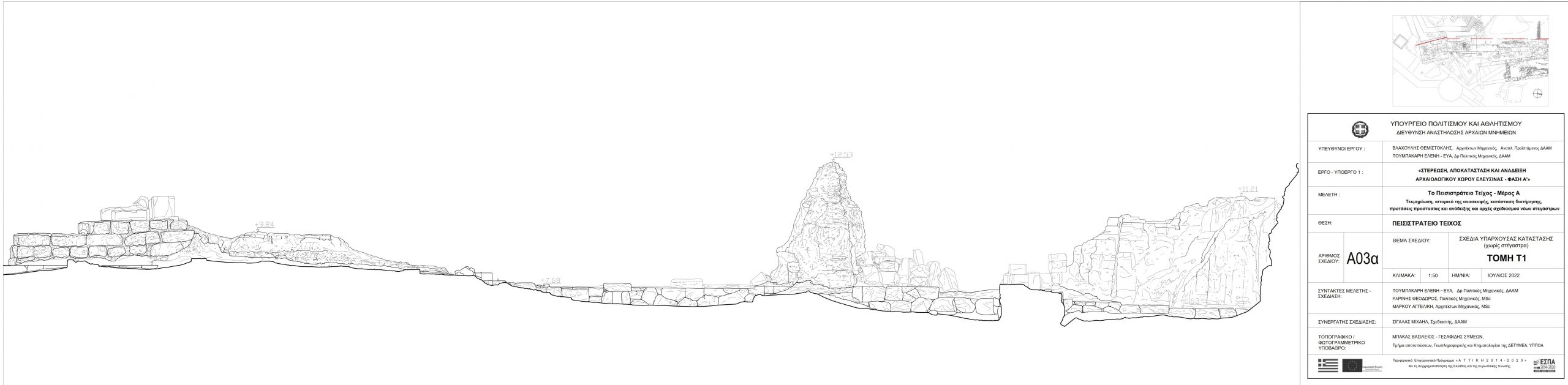 Με την ολοκλήρωση των ανασκαφών του Δ. Φίλιου έχει γίνει πλέον διαχωρισμός των ιστορικών φάσεων και το Πεισιστράτειο τείχος σωστά συνδυάζεται πλέον με το Πεισιστράτειο Τελεστήριο. Ως παράδειγμα της διερεύνησης που έλαβε χώρα, παρουσιάζεται εδώ (αρχείο web Ιστορικό ανασκ Φιλίου) το σχετικό απόσπασμα της μελέτης.