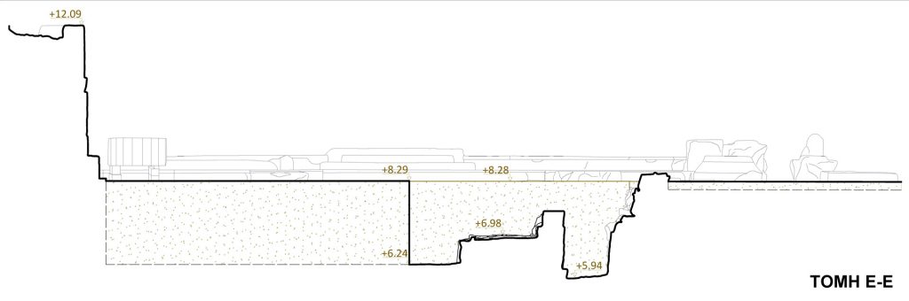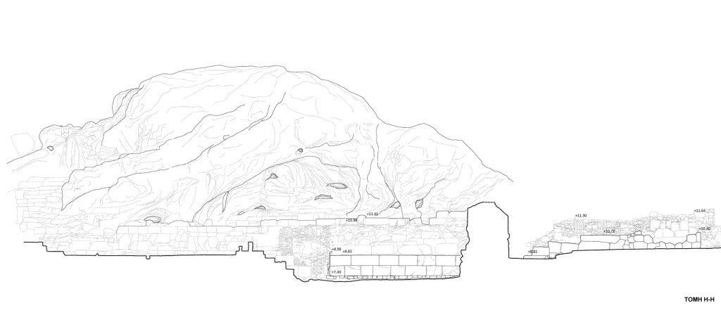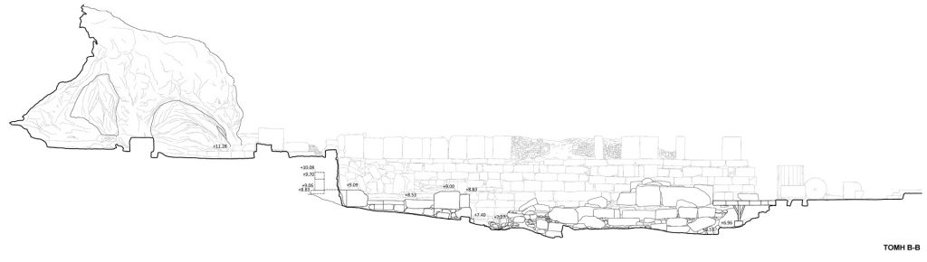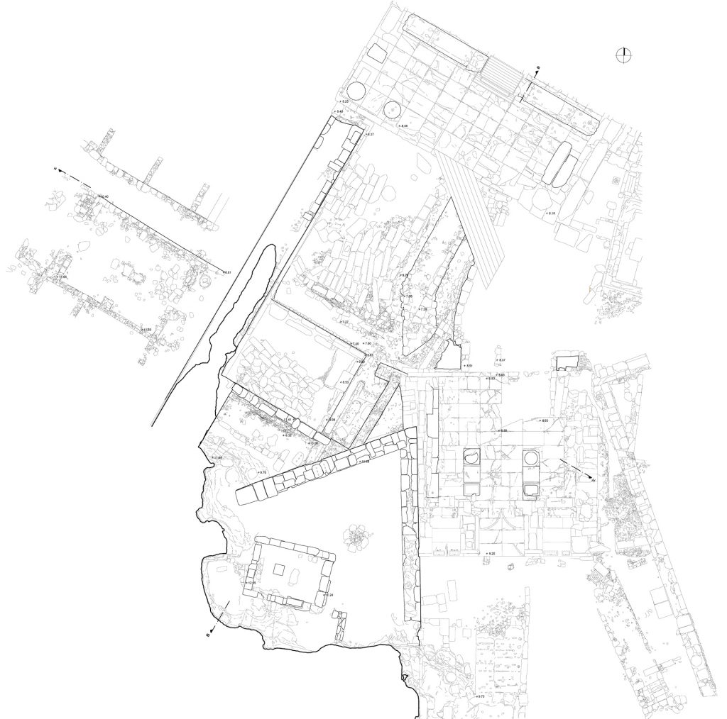 Επίσης, στο πλαίσιο της τεκμηρίωσης πραγματοποιήθηκε για πρώτη φορά λεπτομερής σχεδιαστική αποτύπωση της περιοχής επέμβασης. Τα γραμμικά σχέδια (κάτοψη και τομές) προέκυψαν βάσει επεξεργασίας του τρισδιάστατου ψηφιακού μοντέλου των Β. Μπάκα και Σ. Γεσαφίδη της ΔΕΤΥΜΕΑ, ΥΠΠΟΑ.