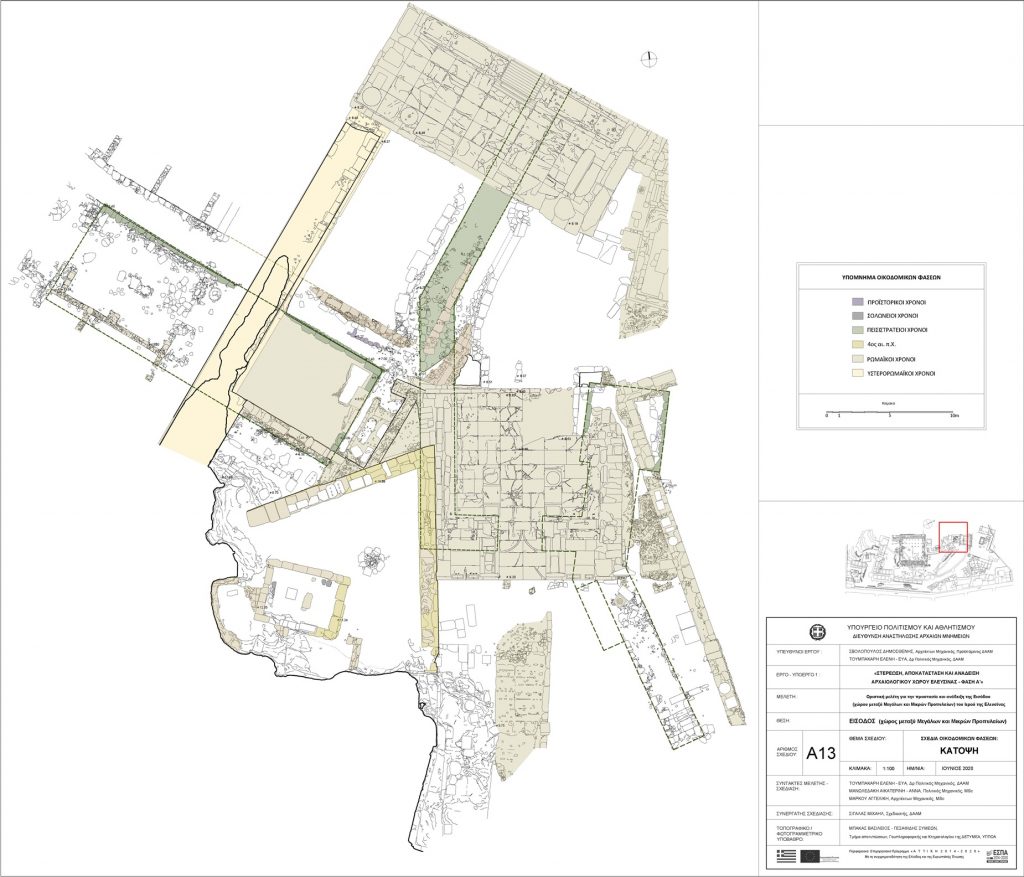 Η οικοδομική ιστορία της περιοχής της Εισόδου συνοψίζεται εν συντομία στα ακόλουθα: