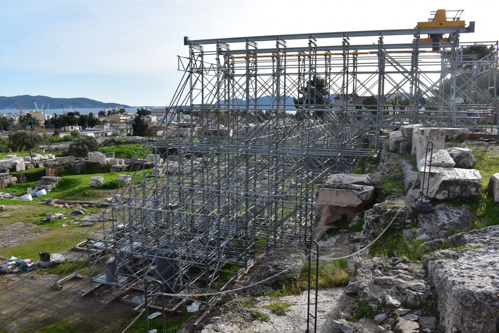 Η μελέτη «Στατική μελέτη μεταλλικού ικριώματος με γερανογέφυρα στο Τελεστήριο της Ελευσίνας» (2019) εκπονήθηκε από την Κωνσταντίνα Χορμόβα, Πολιτικό Μηχανικό, κατόπιν ανάθεσής της από τη ΔΑΑΜ στο πλαίσιο υλοποίησης του Έργου «Επείγουσες Στερεωτικές και Αναστηλωτικές Εργασίες» χρηματοδοτούμενο από την ΣΑΕ 514 – ΠΔΕ 2019, το οποίο εκτελέστηκε απολογιστικά και με αυτεπιστασία από την ΔΑΑΜ. Η μελέτη αποτέλεσε εξειδίκευση της μελέτης εργοταξίου, η οποία εκπονήθηκε το 2019 στο πλαίσιο του έργου. Η εγκατάσταση ικριώματος με γερανογέφυρα αποτέλεσε απαραίτητη προϋπόθεση για τη μεταφορά και απόθεση των διάσπαρτων αρχιτεκτονικών μελών από την ευρύτερη περιοχή του Τελεστηρίου επί του υψηλού ανδήρου. Από την διερεύνηση διαφόρων τρόπων και διατάξεων μεταφοράς που προηγήθηκε, αποδείχθηκε ότι η συγκεκριμένη επιλογή αποτελούσε, για τις συγκεκριμένες συνθήκες, τη βέλτιστη οικονομοτεχνικά λύση.
