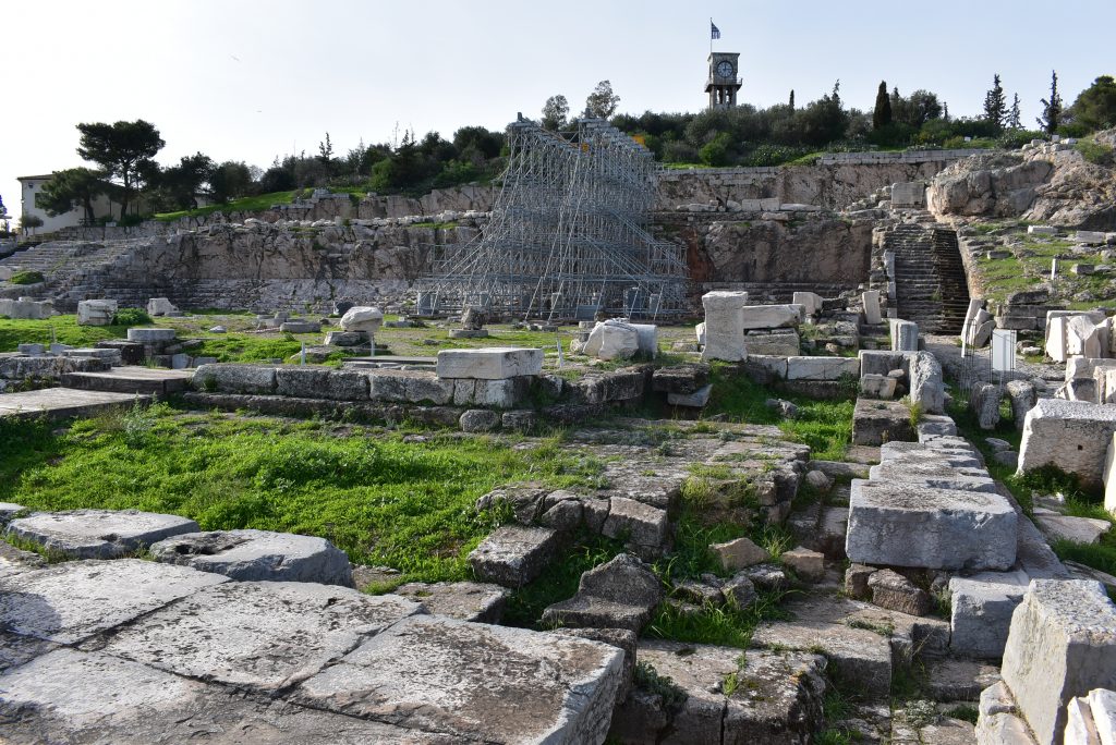 Το ικρίωμα διαμορφώθηκε στη δυτική πλευρά του Τελεστηρίου, στο βόρειο μισό της περιοχής των λαξευμένων στο βράχο καθισμάτων. Εδράστηκε εν μέρει στο επίπεδο του δαπέδου του Τελεστηρίου, εν μέρει στις κερκίδες και εν μέρει στο άνδηρο, το οποίο βρίσκεται περίπου 7,40μ. ψηλότερα από το μνημείο.