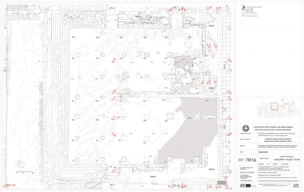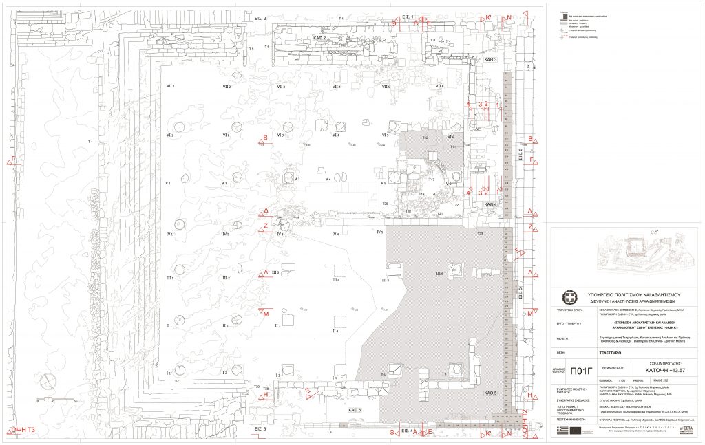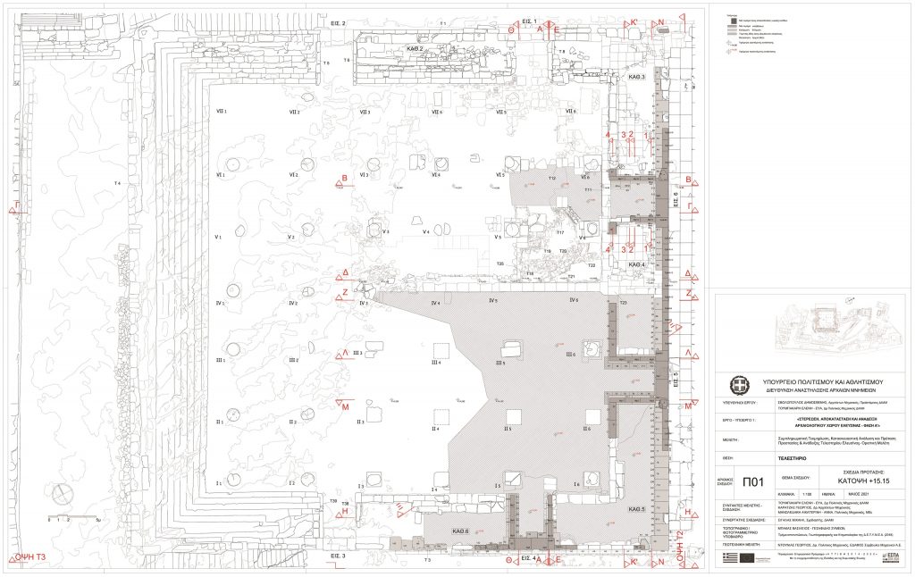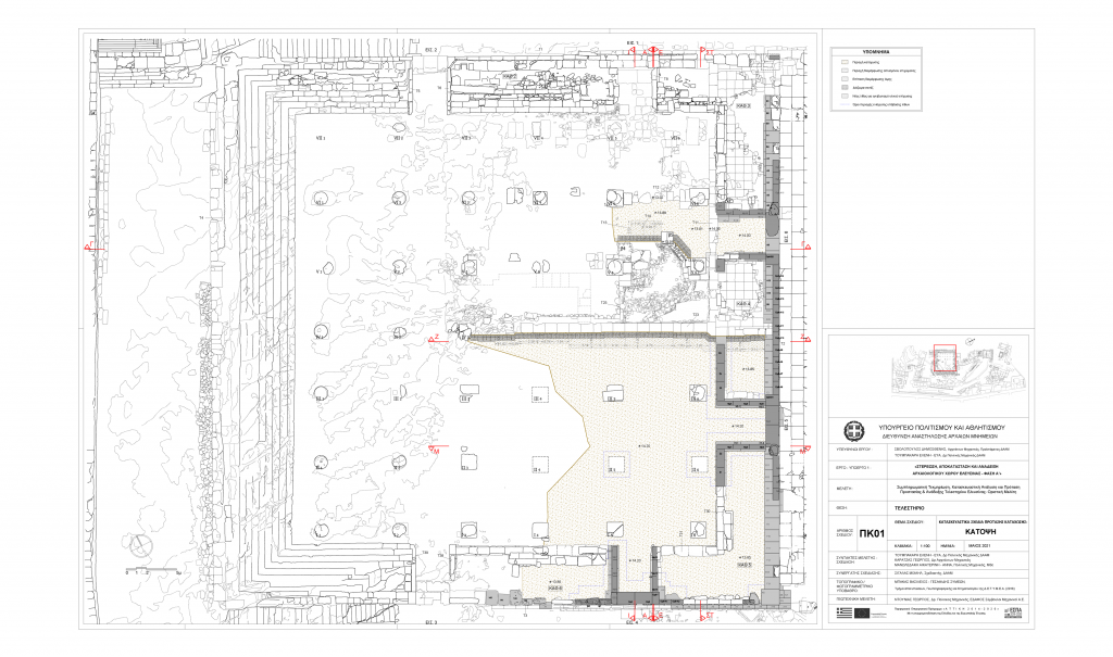 6. Επέκταση του τμήματος του υφιστάμενου, εντός των ορίων του Πεισιστράτειου Τελεστηρίου, ανοικτού ορύγματος που θα παραμείνει ορατό για την ανάδειξη των προγενέστερων οικοδομικών φάσεων σε συνδυασμό με την κάλυψη της περιοχής της επέκτασης του μυκηναϊκού Μεγάρου Β, έτσι ώστε να επιτευχθεί η ανάδειξη και χρήση της βόρειας εισόδου του ανατολικού τοίχου του Περίκλειου Τελεστηρίου. Θα παραμείνουν ορατά η ΝΑ γωνία και όλος ο νότιος τοίχος του πρώιμου αρχαϊκού Τελεστηρίου, η κλίμακα και ο εξώστης του Μεγάρου Β και τμήμα του καμπύλου γεωμετρικού περιβόλου με τον υποκείμενό του μυκηναϊκό.