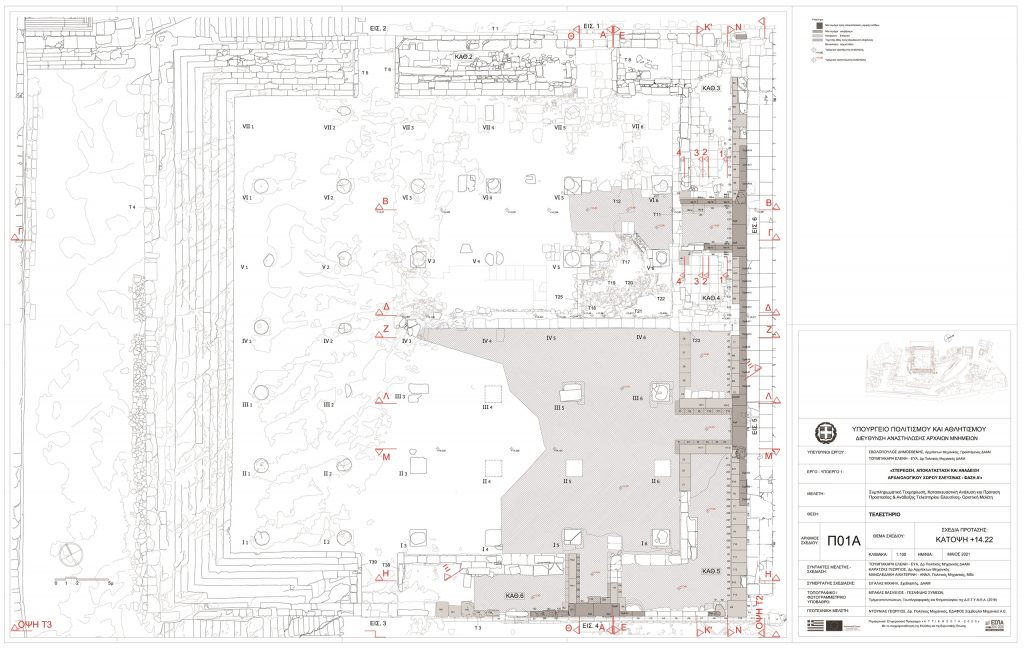 7. Επέκταση του τμήματος του Πεισιστράτειου Τελεστηρίου που θα παραμείνει ορατό. Συγκεκριμένα, θα αφεθούν ορατά όλος ο νότιος τοίχος, οι δύο περιοχές του Πεισιστράτειου Προστώου που διασώζουν τις πλάκες του δαπέδου τους και ο ανατολικός θυραίος τοίχος του Πεισιστράτειου Τελεστηρίου.